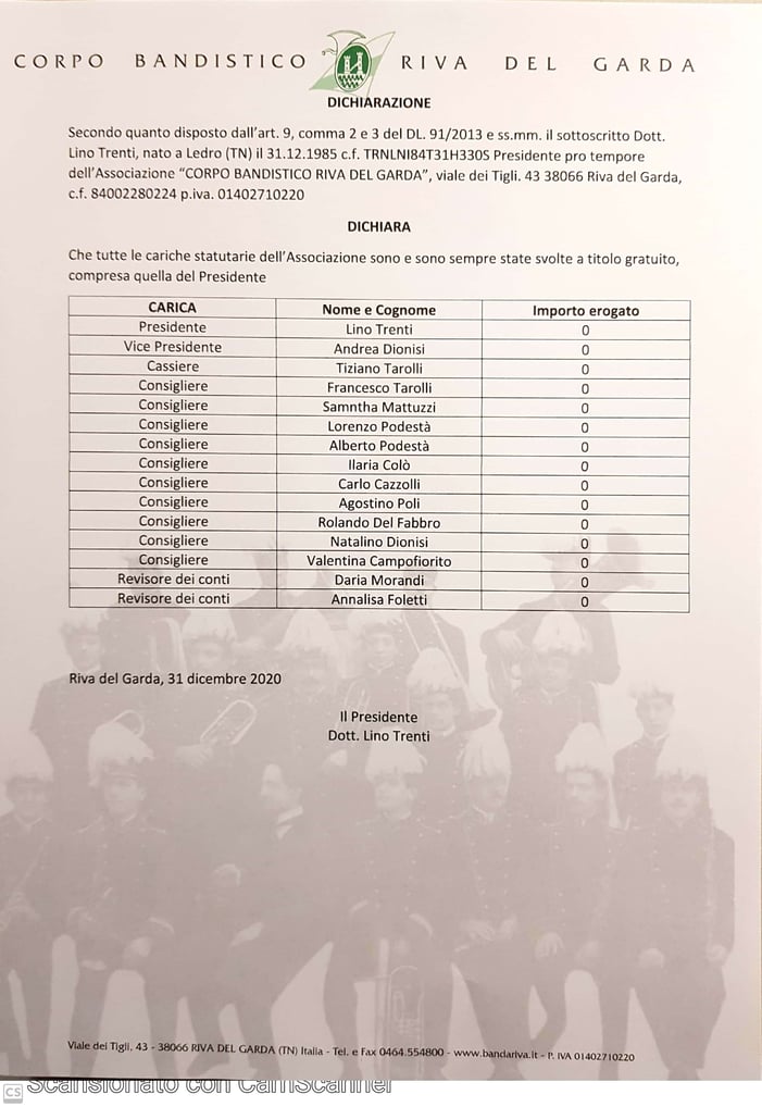 Dichiarazione utilizzo dati